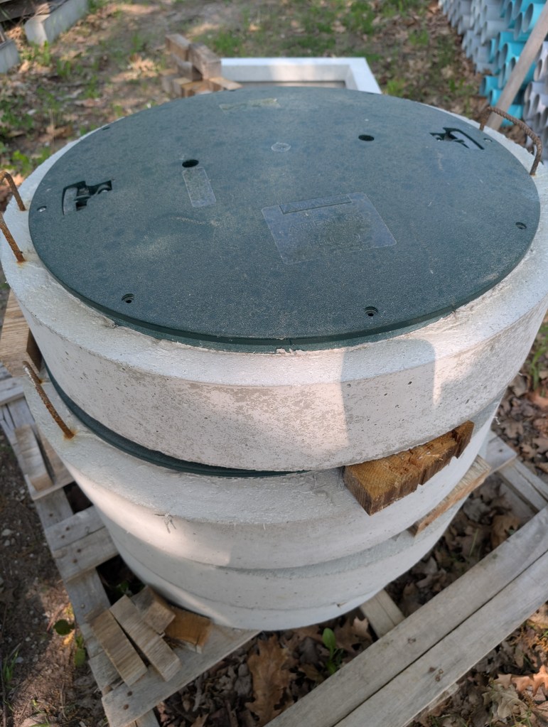 If you have a lid which doesn’t sound like any of the above, that’s OK! We have a universal riser, which is a 30” x 36” concrete slab with a round 24” Polylok riser cast into it. As long as your lid opening is smaller than those dimensions and the top of your tank is flat., this option will work for you, allowing you to switch over to Polylok and use their risers to come up to ground level.