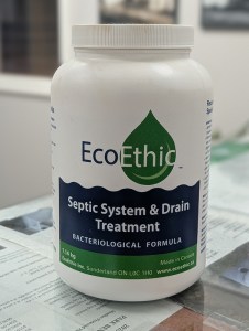 EcoEthic Septic Treatment is a premium quality bacteriological additive which contains necessary bacteria. which breakdown organic material that builds up in systems. As a result itis used and recommended by industry professionals to help prevent system failure and mal-function. A septic can be trouble free. Only clean clear effluent comes from a properly operating septic tank. With no undigested solids to clog the soil pores. the effluent readily soaks into the soil and the result is a tile field that will be trouble free for years.